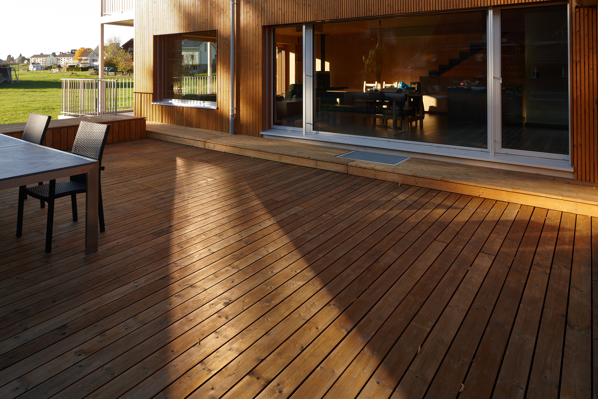 ThermoWood Terrassendiele Fichte glatt 4-seitig gehobelt, Rückseite mit Nut