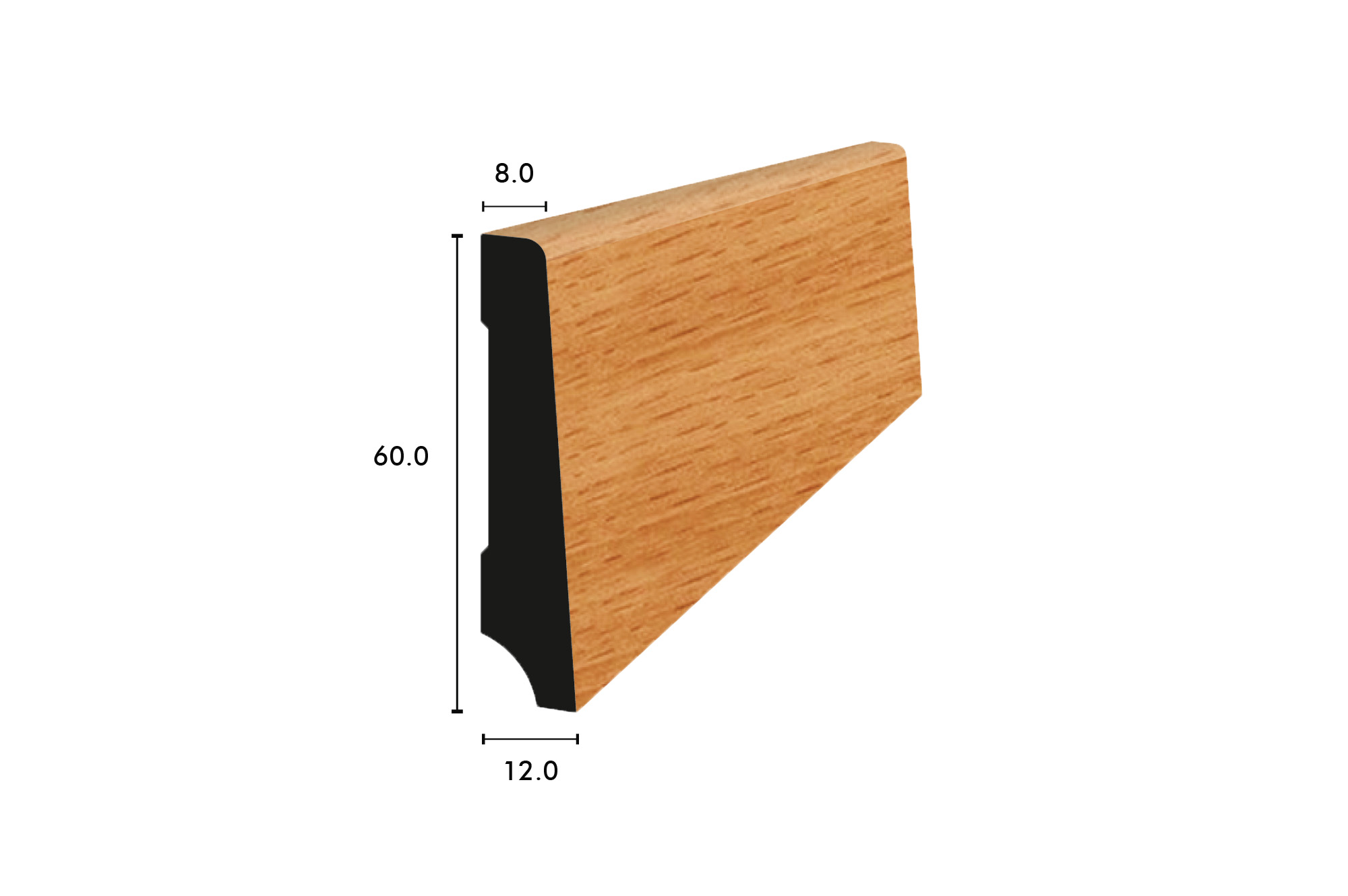 Sockelleisten massiv Buche gedämpft lackiert 60/12/8 mm