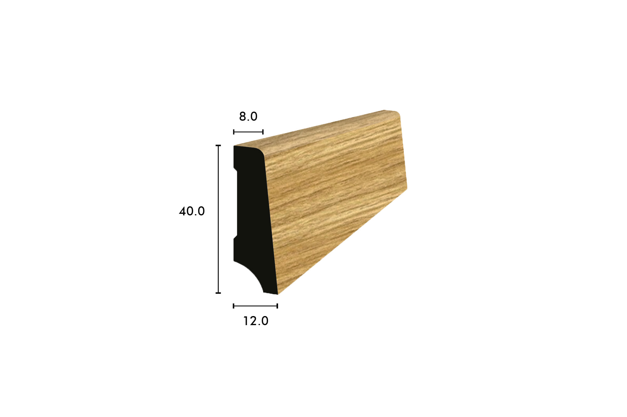 Sockelleisten massiv Eiche amerikanisch lackiert 40/12/8 mm