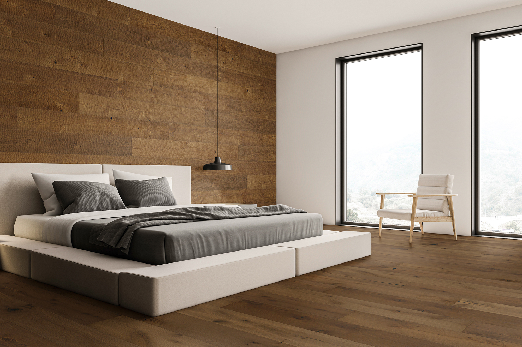 Ein besonderes Highlight dieser Kollektion ist das Design aguas. Hierfür werden stark geräucherte Eichendielen in harmonischer Sortierung von Hand gehobelt. Die Oberfläche zeigt durch diese Handarbeit typische Ausbuchtungen und verleiht dem Boden seine aussergewöhnliche Struktur. Eine starke, faszinierende Struktur, die sich sehr aufregend anfühlt, also ein Boden mit echtem Wellnesseffekt. Dieser optisch so aussergewöhnliche Stil kann sein volles Potential und Schönheit auch als Wanddekoration entfalten und setzt als Wandpanele besondere Akzente.
