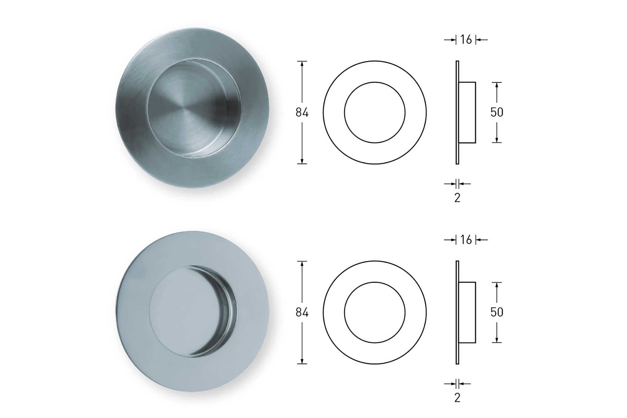 Muschelgriffe Scoop Kreisrund offen (matt)